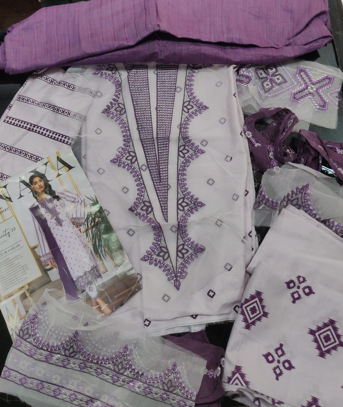 Description: lawn suit with embroidery and lawn dupatta