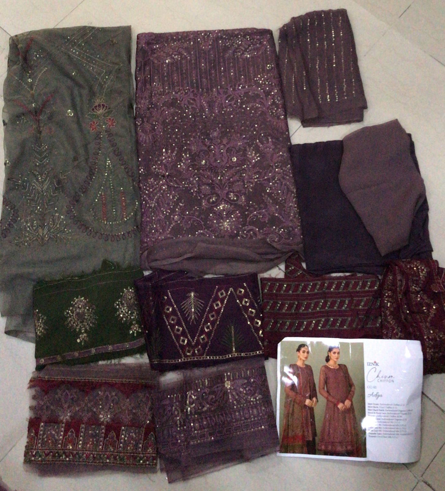 Description: pure chiffon suit with embroidery/ sequins embroidery and net embroidered dupatta