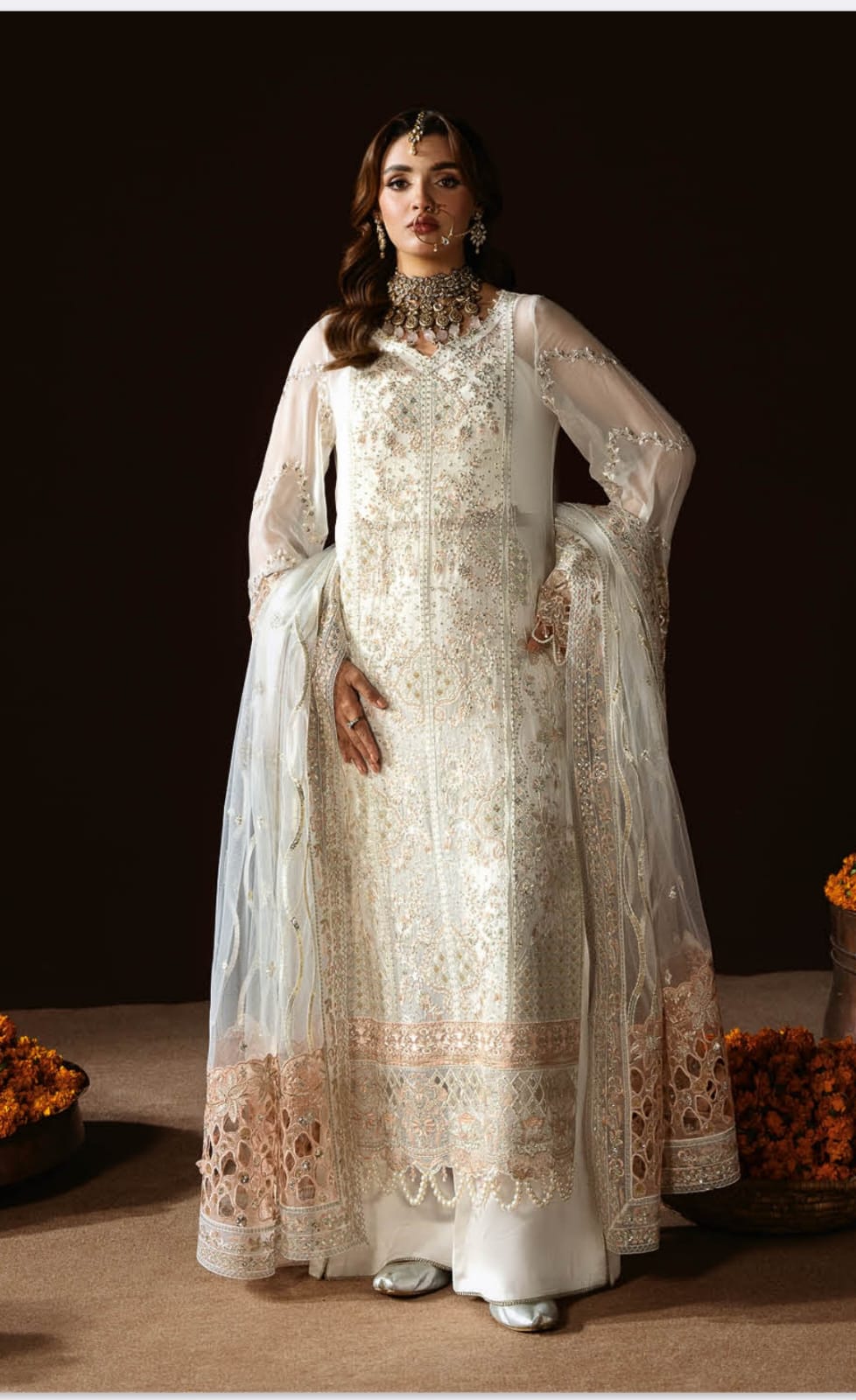 Description: pure chiffon suit with embroidery/ sequins work and heavy net embroiderd dupatta