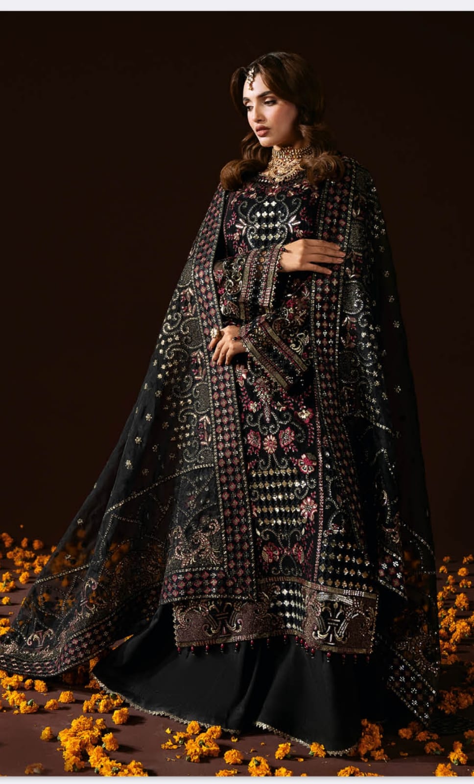 Description: pure chiffon suit with embroidery/ sequins work and heavy net embroiderd dupatta