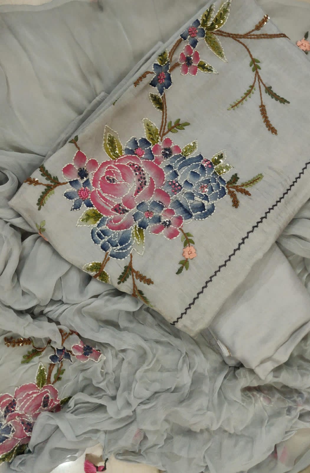 Upada silk suit with french knot embroidery work pure chiffon dupatta