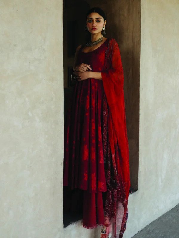 Embroidered sleeve border patch. Embroidered ghera patti. Printed chiffon dupatta& dyed